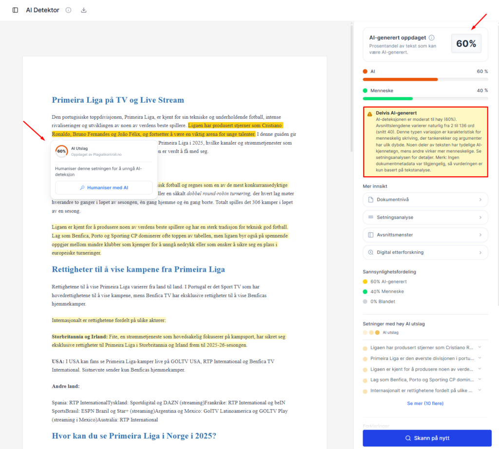 Noen verktøy viser segment-for-segment, slik at du kan se om bare deler av teksten flagges – nyttig i undervisning og redaksjonell kvalitetssikring.